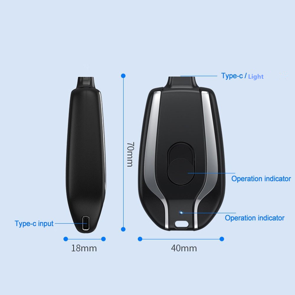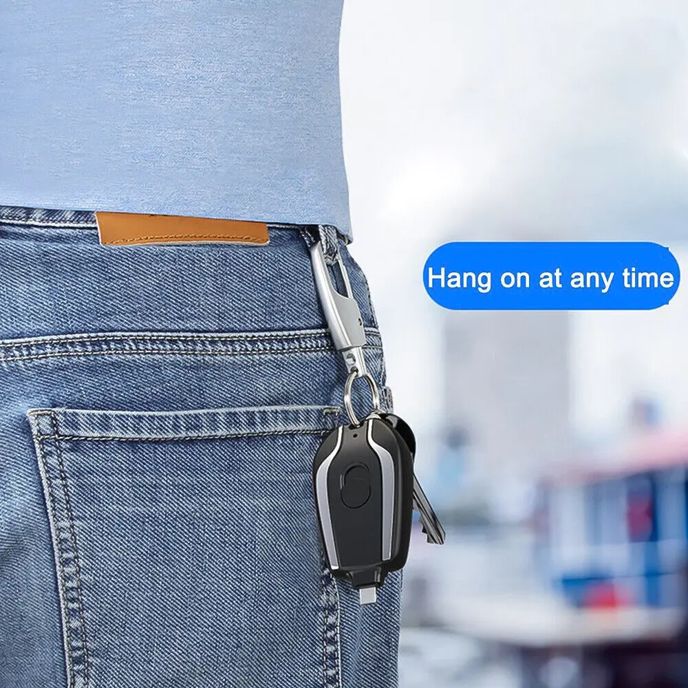 💥 The temporary power bank is just the size of a car key. It doesn't look bulky or awkward when it hangs with our keys, and you can take it anywhere as a key chain.